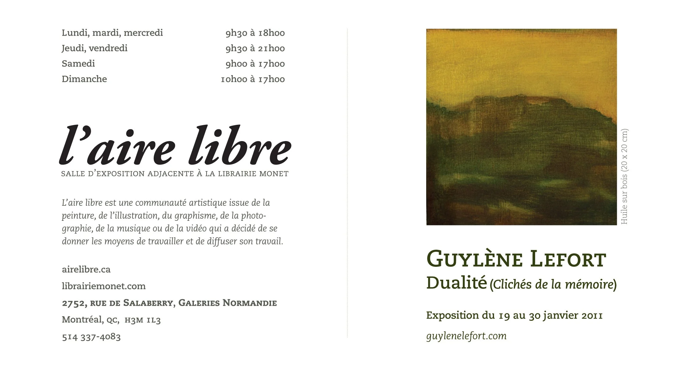 Dualité (Clichés de la mémoire). Pour cette exposition, j’ai sélectionné une vingtaine d’oeuvres qui étaient également exposées à Art Mûr, pour créer à nouveau un accrochage séquentiel formé de diptyques et de triptyques.
